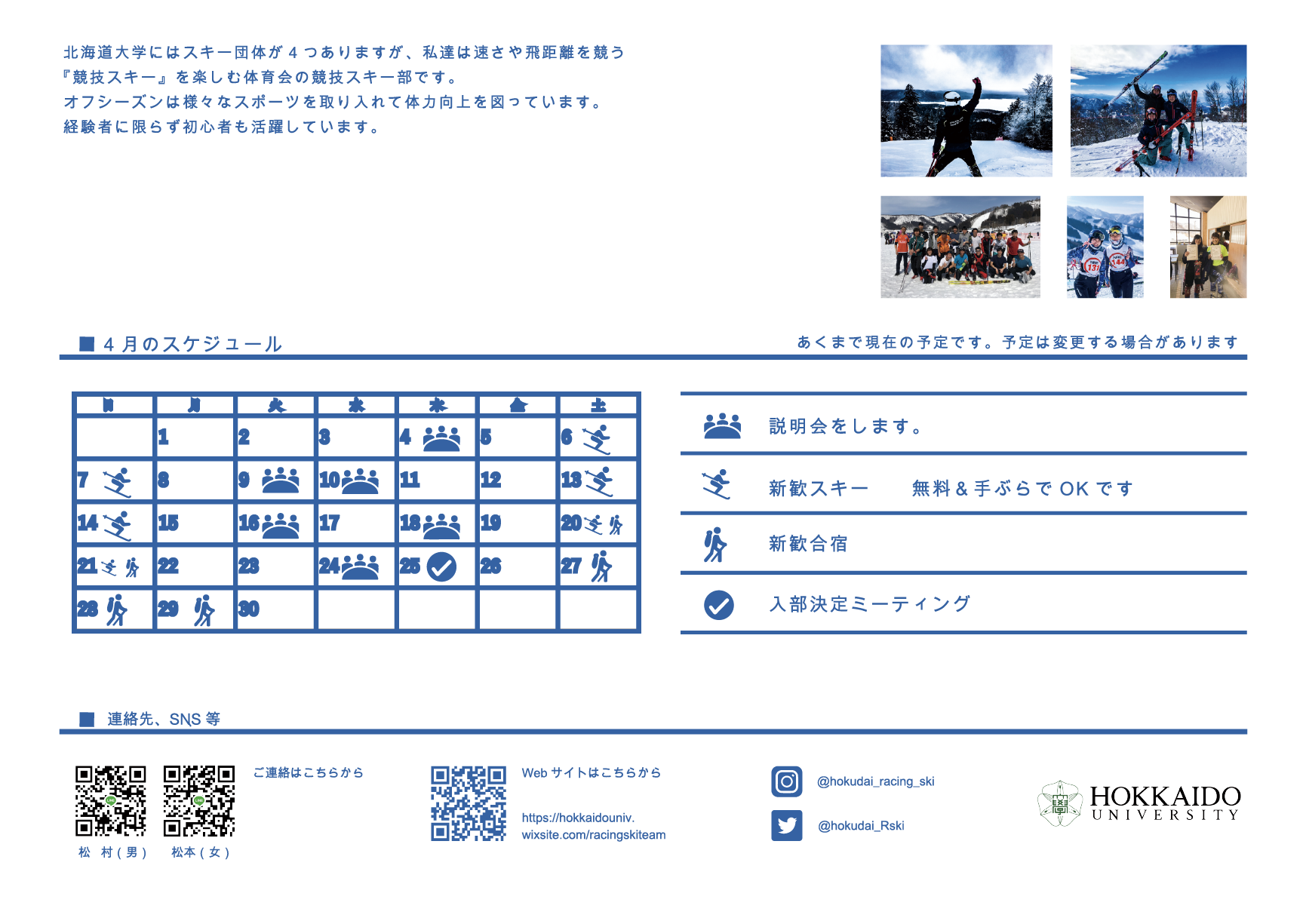 北海道大学体育会競技スキー部さんの新入生募集フライヤーをデザインさせていただきました。spring/2019