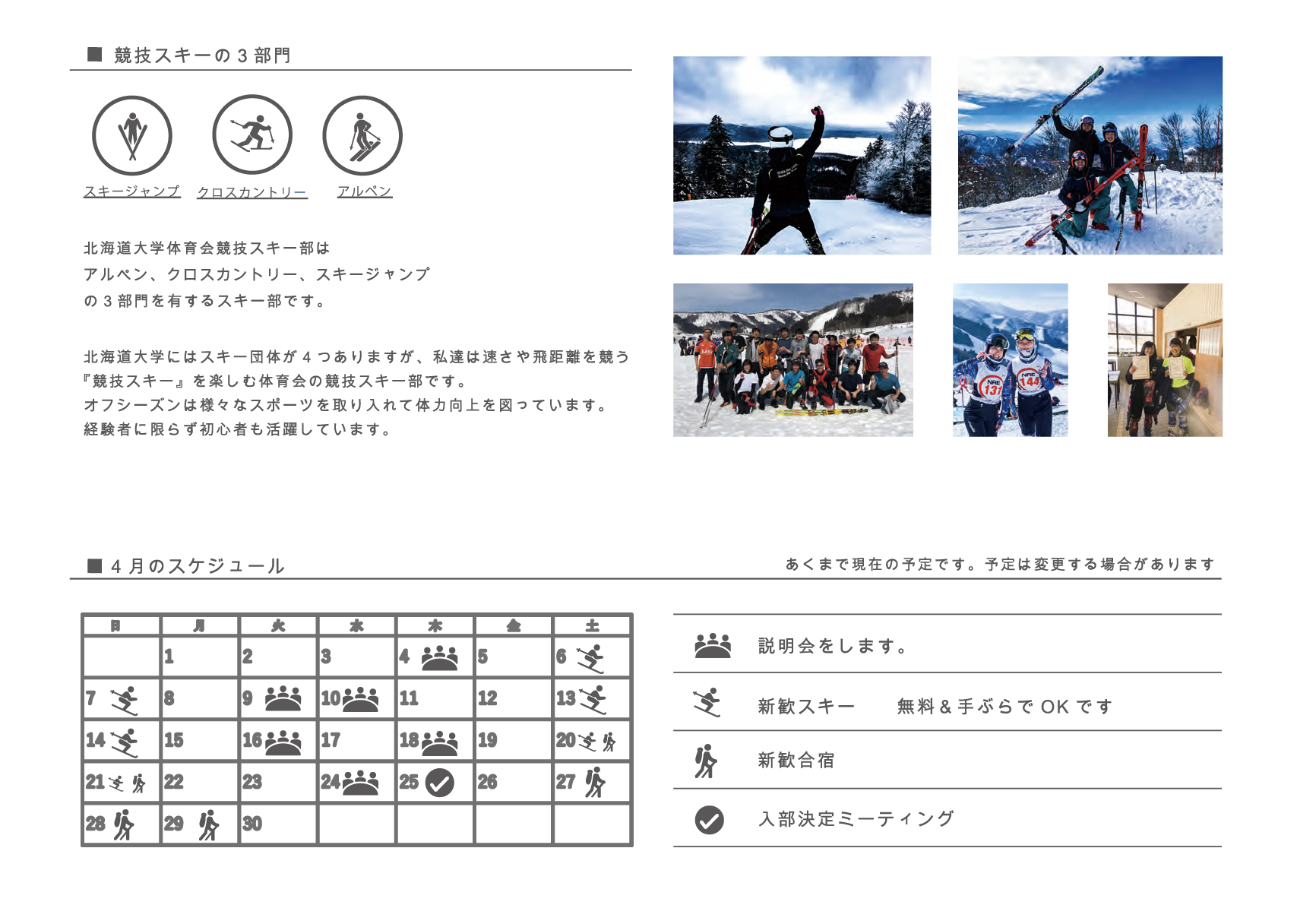 サークルフライヤー北海道大学体育会競技スキー部さんの新入生募集フライヤーをデザインさせていただきました。spring/2019